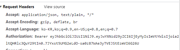 그래도 이렇게 로그인 헤더와 로그인 유저 정보 헤더 둘 다 Authorization가 뜨기 시작했습니다!!!!!!!!!!!