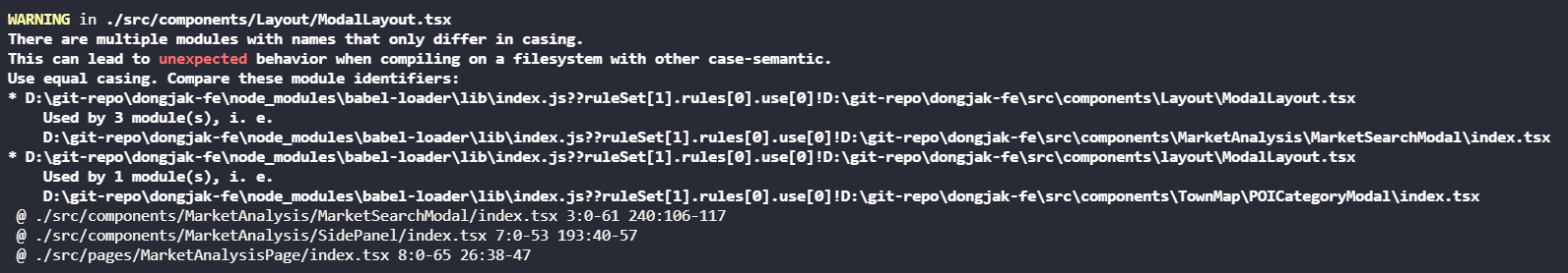 [webpack] Webpack :“대소 문자 만 다른 이름을 가진 모듈이 여러 개 있습니다.”그러나 참조 된 모듈