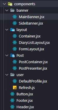 아래 이미지는 현재 플젝 리액트 디렉토리 구조다