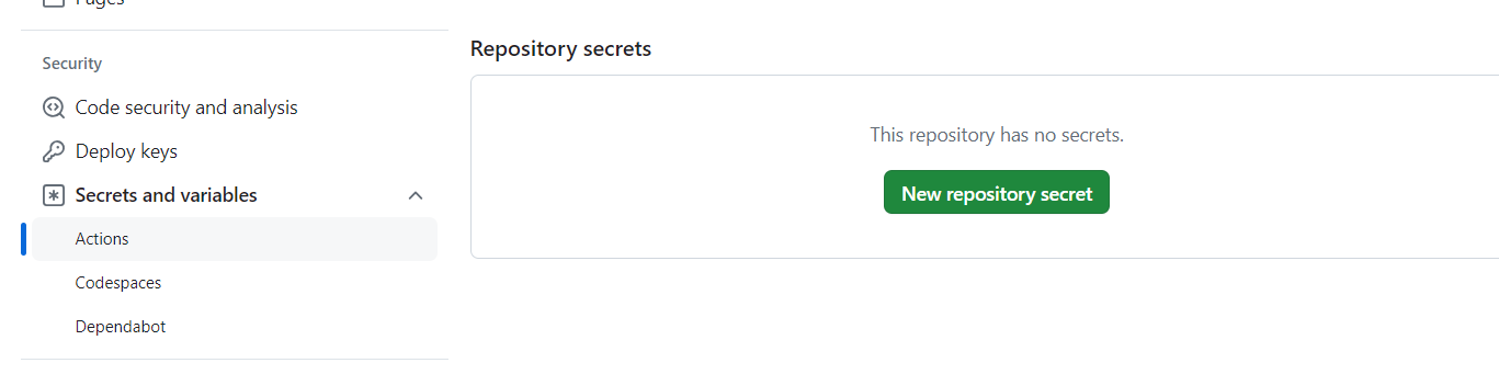 해당 레파지토리 설정에 들어가셔서 new repository secret를 클릭해서 위에 작성해주신 변수명대로 추가해주시면 됩니다.