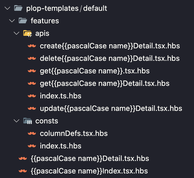 - plop-templates/default/features/apis/**/* : 해당 디렉토리 내의 모든 파일을 복사한다는 의미